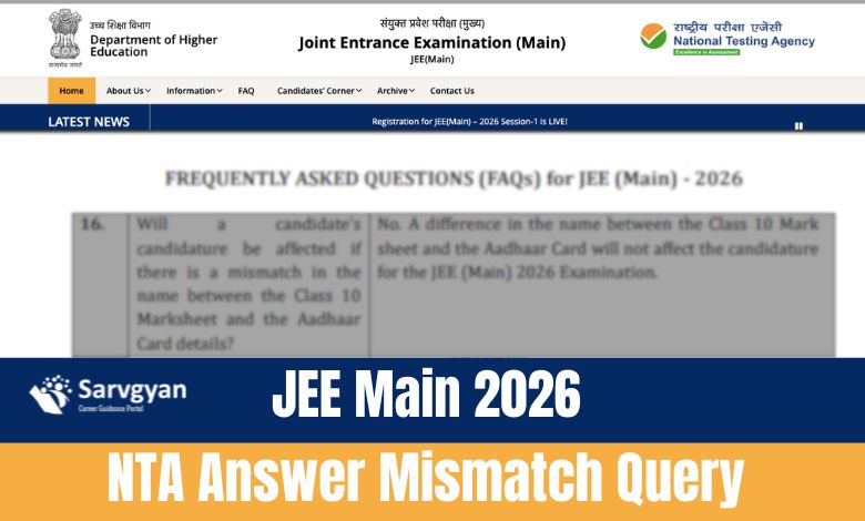 The authority has said that a difference in the name between the Class 10 Mark sheet and the Aadhaar Card will not affect the candidature for the JEE (Main) 2026 examination.