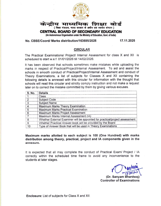 All CBSE board exam students and schools are required to review the official marks bifurcation for the 2025-26 academic session to understand how each subject will be evaluated this year.