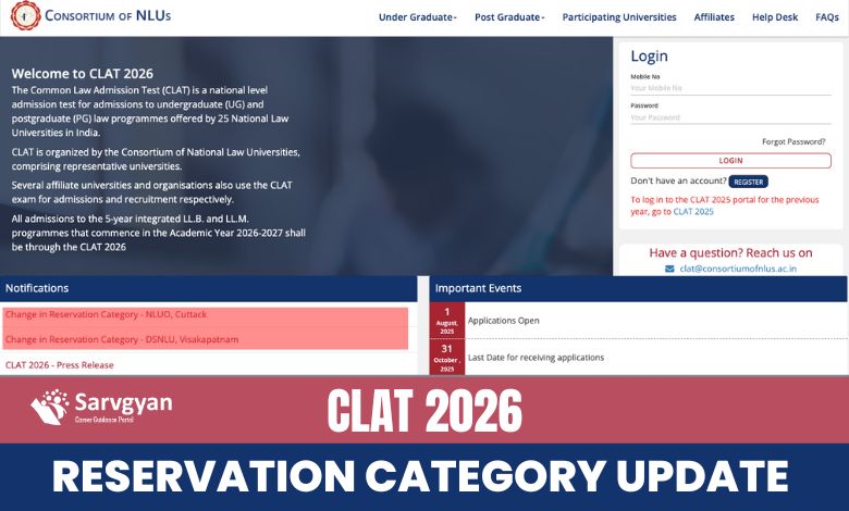 CLAT Exam Update: The Consortium of National Law Universities (NLUs) has recently released an important notice on the change of reservation category for CLAT 2026.