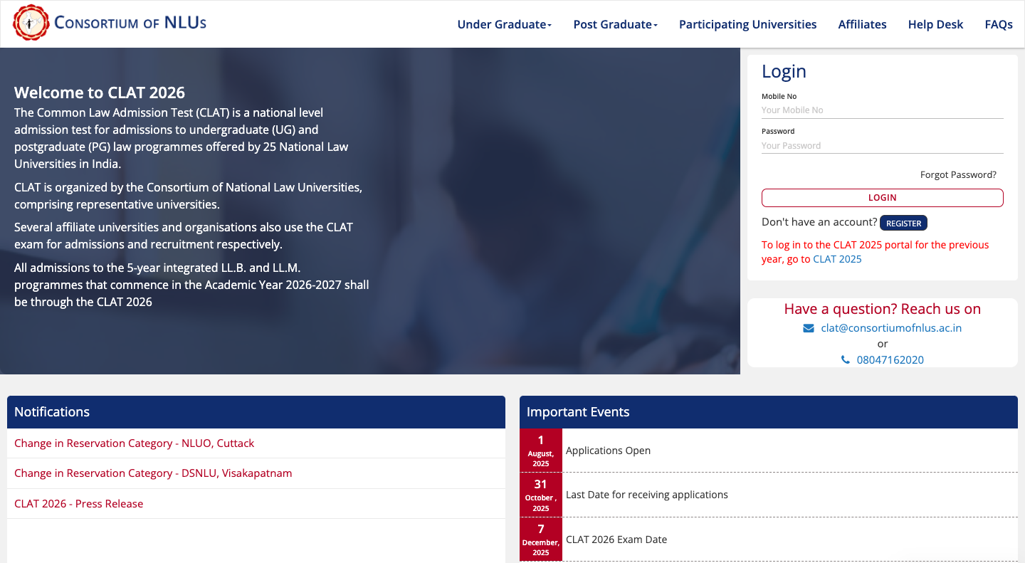 The CLAT 2026 registration started on 01st August 2025, and the last date to apply is 31st October 2025. As the deadline is near, all the eligible candidates are advised to submit the form sucessfully on time.