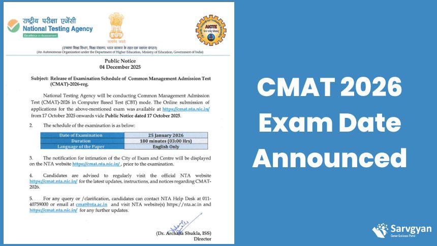 NTA has released notice announcing CMAT 2026 exam date and details, check below.