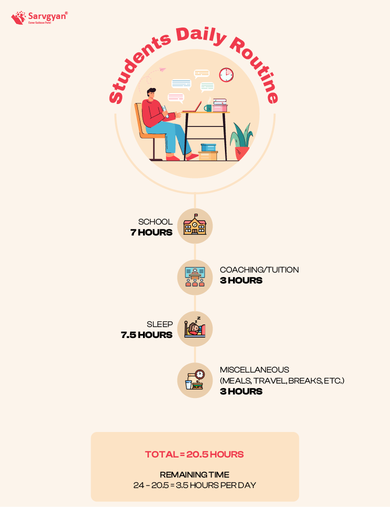 This leaves only 3–4 hours for self-study, which is why planning is crucial. Without a proper routine, even long hours of studying can be inefficient and stressful.