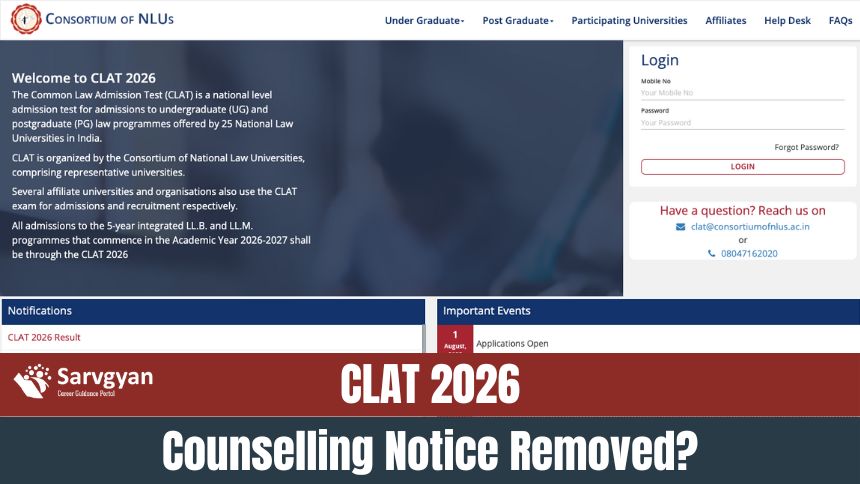 CLAT Counselling Update: The Consortium of National Law Universities (NLUs) has last released the CLAT 2026 result. Along with the result 2 notice related to the counselling was also made available.