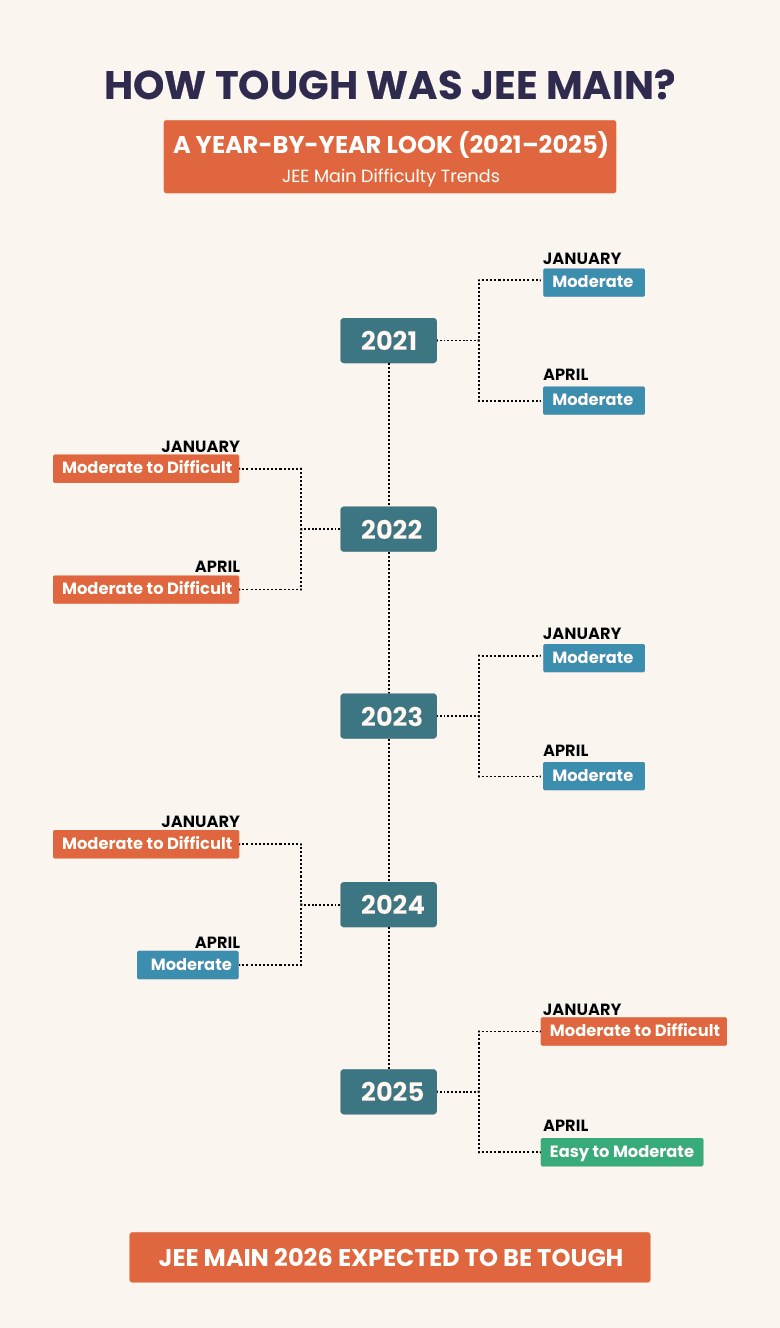 But here’s the real question: Does JEE Main actually get more difficult every year, or is it just the pressure talking? And if it does feel tougher, what factors could actually make JEE Main 2026 harder than the previous sessions?