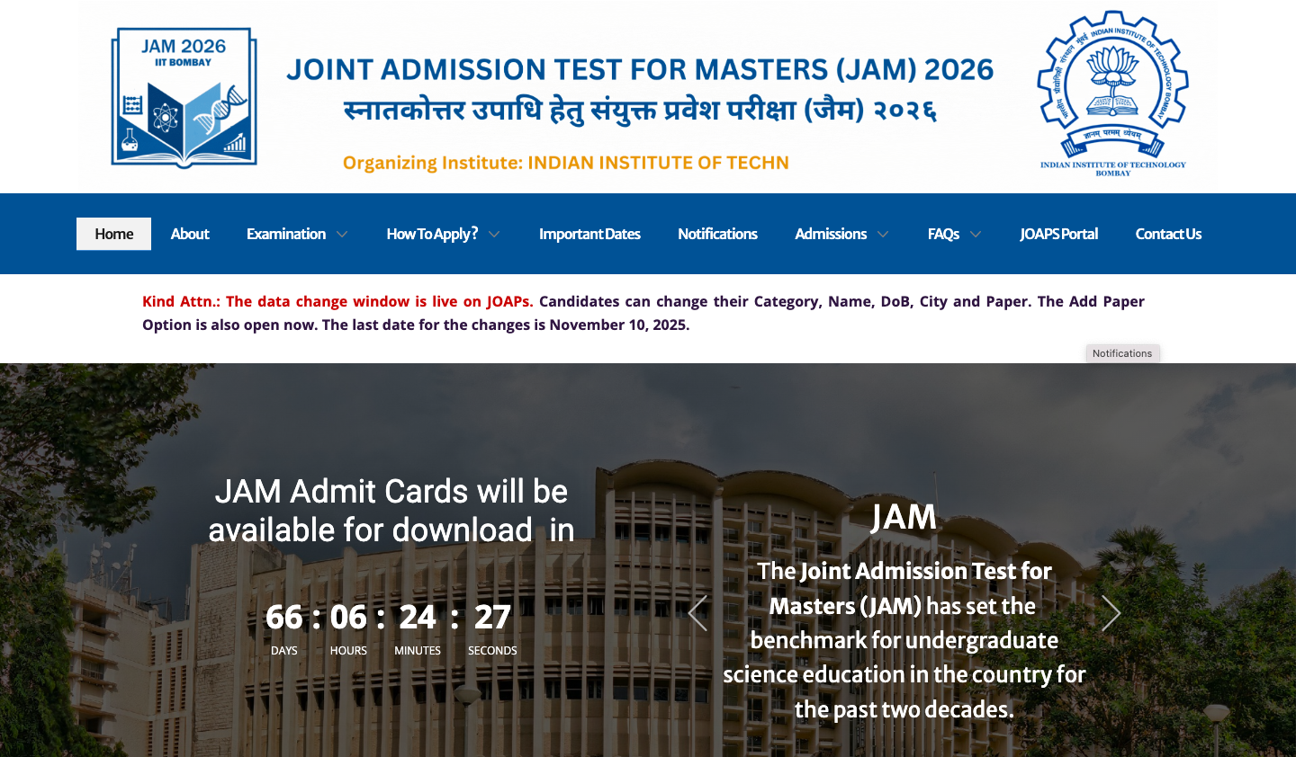 IIT JAM Update: The Indian Institute of Bombay today has started the JAM 2026 application correction process. Other than online, there is no other mode to edit the form.