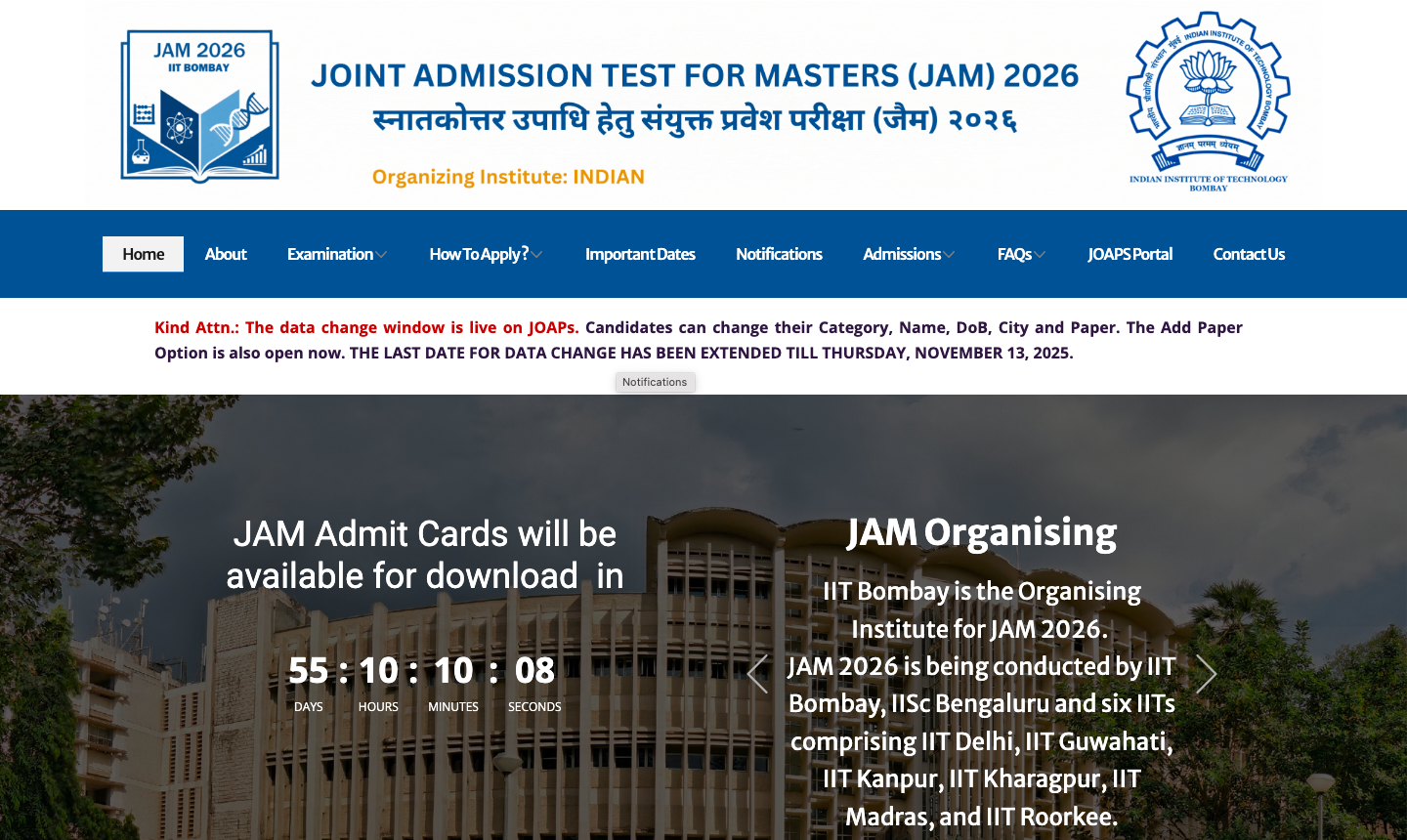 The JAM correction form facility is a one-time opportunity, so candidates only have 06 days to avail this facility. IIT Bombay has activated the correction link on 31st October 2025, and the last day to make corrections was 10th November 2025, which is now extended till 13th November 2025.