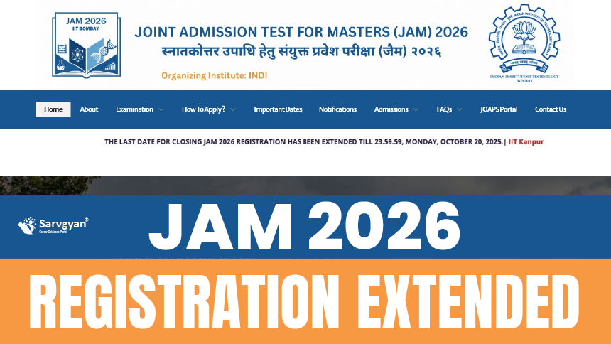 JAM Exam Update: The Indian Institute of Technology, Bombay, has extended the registration deadline for the Joint Admission Test for Master’s, JAM 2026.