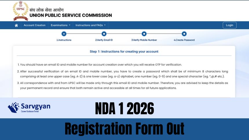NDA Exam Update: The Union Public Service Commission on 10th December 2025, has officially started the NDA 2026 registration process for session 1 and has also released the notification PDF.