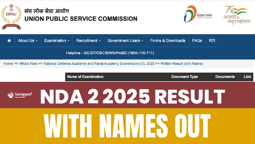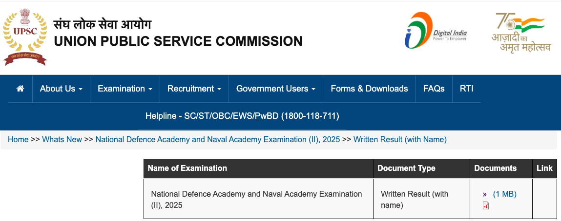 NDA result is released at upsc.gov.in. Along with the NDA 2 2025 result, the authority has also released the NDA 1 2025 final result.